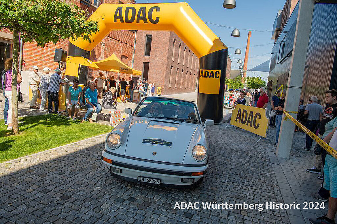 Bei strahlendem Sonnenschein feiert die ADAC Württemberg Historic einen gebührenden Abschluss mit der großen Zieleinfahrt an der Buntweberei in Eislingen. In diesem Jahr bildet das Gelände des ehemaligen Industriestandorts den Dreh- und Angelpunkt der 23. Ausgabe der Oldtimer-Ausfahrt. Die liebevoll ausgearbeitete Route führt die über 100 Zweier-Teams der ADAC Württemberg Historic durch den Landkreis Göppingen und über die Schwäbische Alb. Unterwegs legen die Teilnehmenden unter anderem Stopps am Freilichtmuseum Beuren sowie am Modelleisenbahn-Museum Märklineum in Göppingen ein.